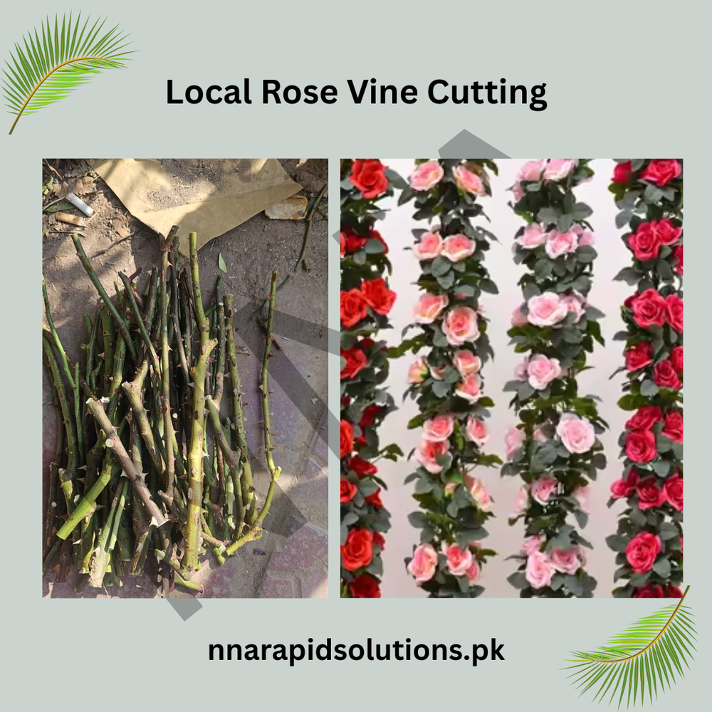 [vc_row][vc_column][vc_column_text css="" woodmart_inline="no" text_larger="no"]Our Local Rose Vine Cuttings are taken from well-established, healthy rose vines that perform excellently in Pakistans climate. These cuttings are ideal for gardeners who want to grow roses naturally at a low cost with high success rates. Once rooted, they develop into vigorous climbing or spreading rose plants, perfect for walls, fences, pergolas, and arches. Local varieties are especially hardy, heat-tolerant, and adaptable, requiring minimal care after establishment. A great option for beginners as well as experienced rose growers.[/vc_column_text][/vc_column][/vc_row]